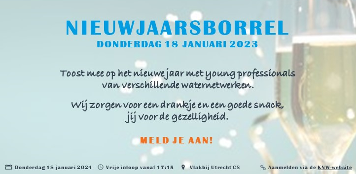 Nieuwjaarsborrel 2023! Toost mee op het nieuwe jaar met SWIB en young professionals van andere waternetwerken, op donderdag 26 januari vanaf 17:15 uur in Utrecht. Wij zorgen voor een drankje en een goede snack, jij voor de gezelligheid. Zien we je daar? Jong KNW organiseert een Nieuwjaarsborrel en daar zijn veel andere waternetwerken bij aangehaakt: […]